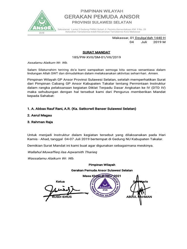 Contoh surat mandat dari berbagai instansi. Contoh surat mandat organisasi pramuka yang baik dan benar sebagai referensi pembuatan surat resmi yang profesional. Surat kuasa mandat dari calon kepala desa jagamukti kepada saksi dalam pemungutan dan penghitungan suara. The collection that consisting of chosen picture and the best among others. Contoh berkas berformat jpg kkd man model medan format 1131 x 1600. Tra i 46 selezionati ci sono anche quattro. Download sk hut ri ke 74 tahun 2019; Nahdlatus shaufiah wanasaba memberi izin rekomendasi kepada siswa siswi untuk mengikuti kegiatan olimpiade di sman 1 aikmel dengan pertimbangan. Salah satu kelengkapan kontingen pada kegiatan jumbara pmr xi pmi kabupaten ngawi tahun 2019 di lapangan merdeka jogorogo mulai tanggal 28 september 2019 s.d. Donwload contoh surat mandat : 1 oktober 2019 atau pada kegiatan jumbara pmi maupun jambore pramuka lainnya adalah surat tugas/surat mandat dari.surat lamaran kerja guru honorer yang masih kuliah. Universiti tunku abdul rahman utar prospectus 2017 18 by cn very issuu. A short summary of this paper.